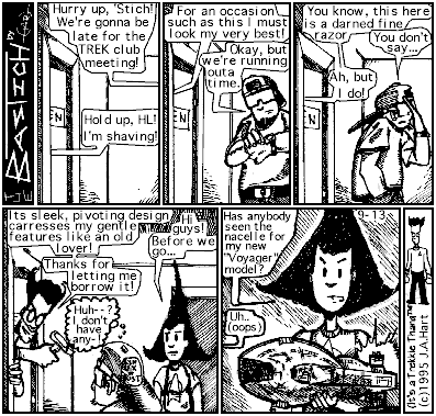CREDITS (Sketch of Bastich wearing a uniform from Star Trek: The Original Series) CAPTION: It's a Trekkie Thang (TM) (c) 1995 Joshua Adam Hart