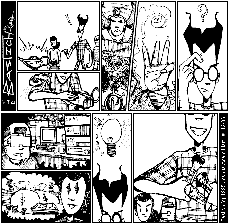 PANEL 8 (A light bulb appears over Bastich's head)
