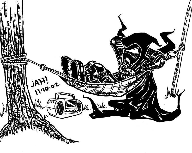 It's been a while since I did anything with this weblog's namesake, and this just seemed like something fun to draw at a time when inspiration is running kinda dry. I used a mechanical pencil and some felt-tip pens (and a sheet of paper!). And I have to say that the Sharpie is the greatest pen ever created. And that's not just the fumes talking!